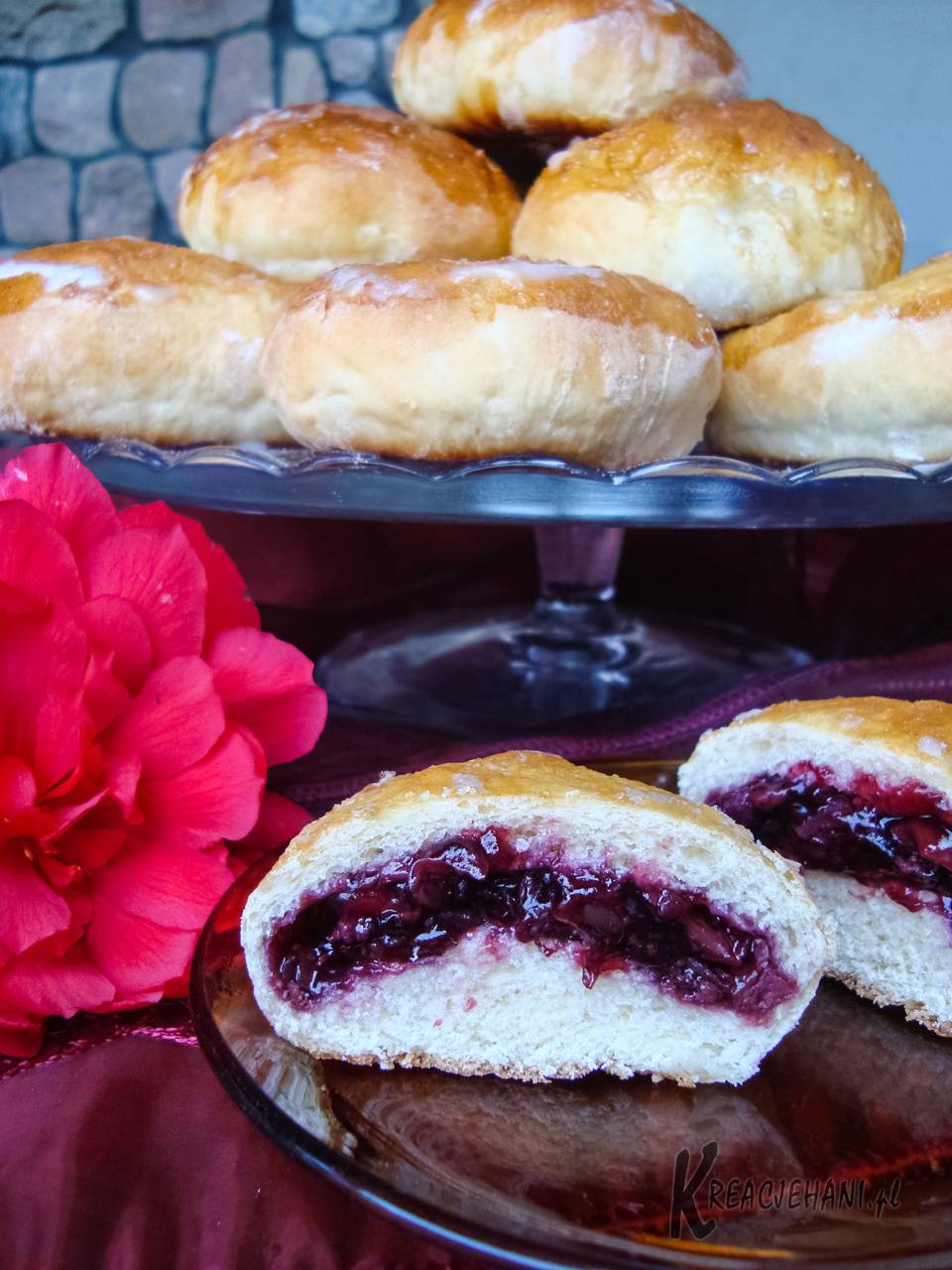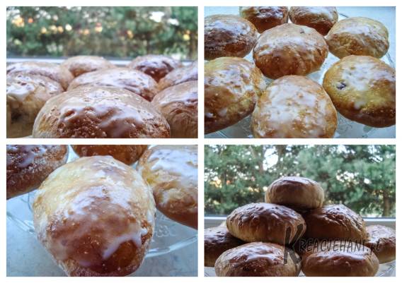 Upieczone i lekko wystudzone bułeczki polukrować. Z podanej porcji ciasta drożdżowego wyszło 20 sztuk całkiem sporych bułeczek 😉