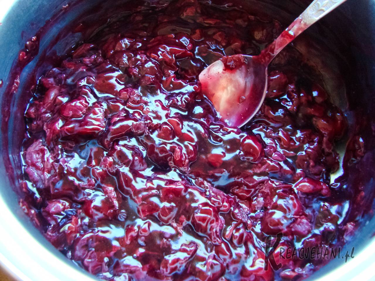 - 0,5 kg wiśni wypestkowanych (dałam 2 słoiki zeszłorocznych wiśni – zobacz Jak wykonać wiśnie w soku własnym)