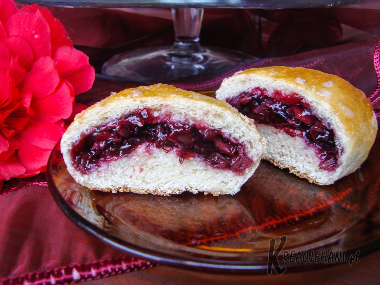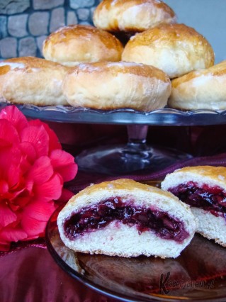Delikatne i puszyste bułeczki nadziewane farszem z wypestkowanych wiśni. Kto nie robił, niech się skusi! 🙂 Aby upiec bułeczki nie potrzeba posiadać szczególnych zdolności kulinarnych. Ręczę, że sukces murowany 😉