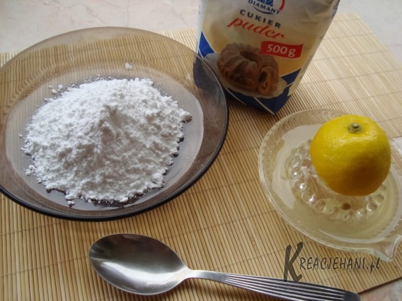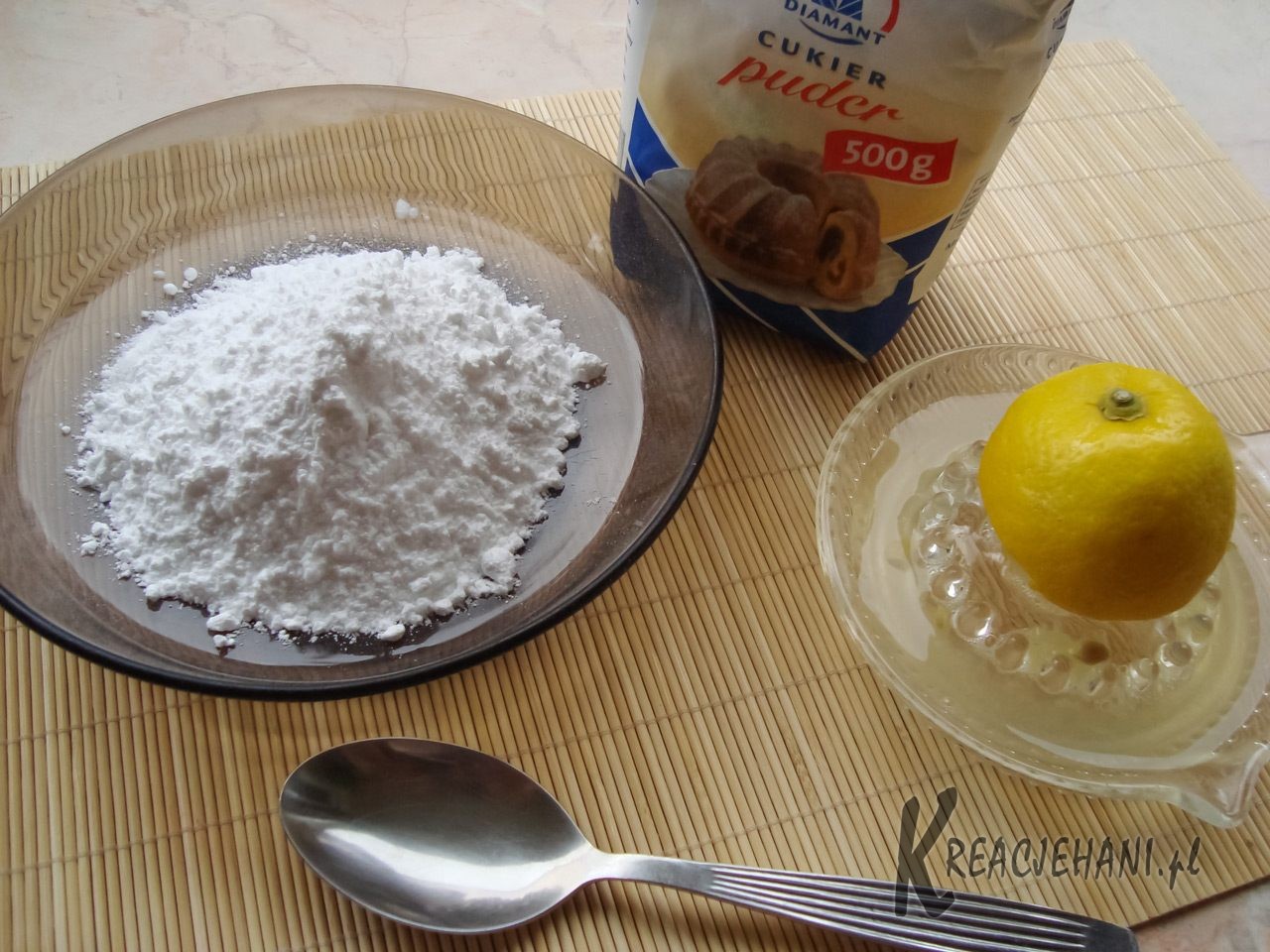Cukier puder utrzeć z sokiem z cytryny i wrzątkiem, na średnio lejący lukier. Dekorować nim wystudzone pączki.