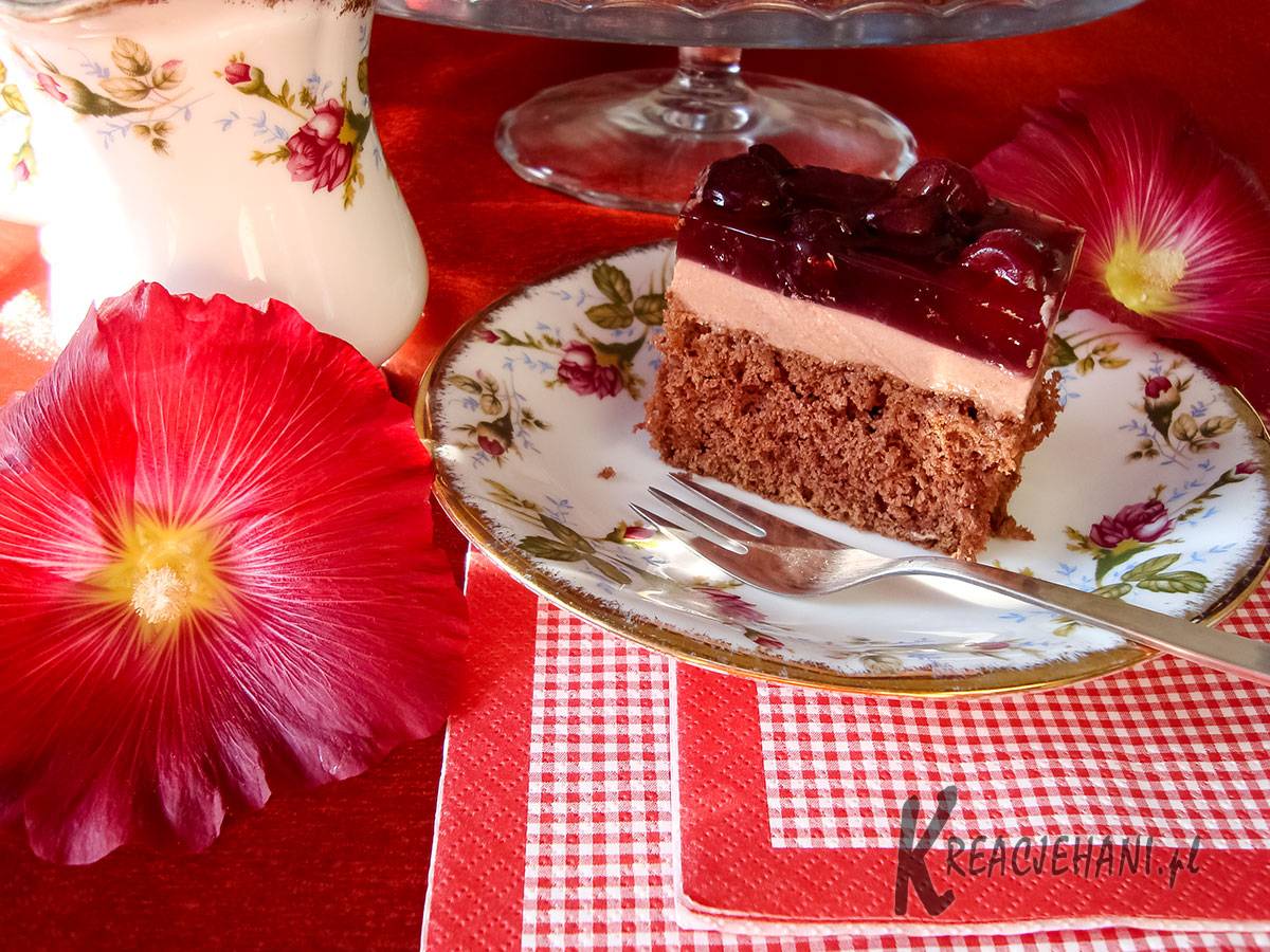 Myśl o zrobieniu tego ciasta chodziła za mną od momentu pokazania się na rynku tegorocznych wiśni. Tego ciasta nie robiłam całe wieki. Nawet wino, którego używa się do niego jest nieosiągalne. Nic to, można użyć zamiennika 😉 Wiśnie w maladze to kakaowy biszkopt, kakaowy sernik na zimno i wypestkowane wiśnie zalane wiśniową galaretką rozpuszczoną w winie. Ciacho prosto z lodówki sprawdzi się w sam raz na zakończenie wakacji. Skuś się i zrób je również, póki wiśnie są jeszcze dostępne 😉